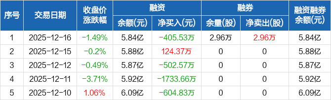 探路者:融资净偿还405.53万元,融资余额5.84亿元(12-16)