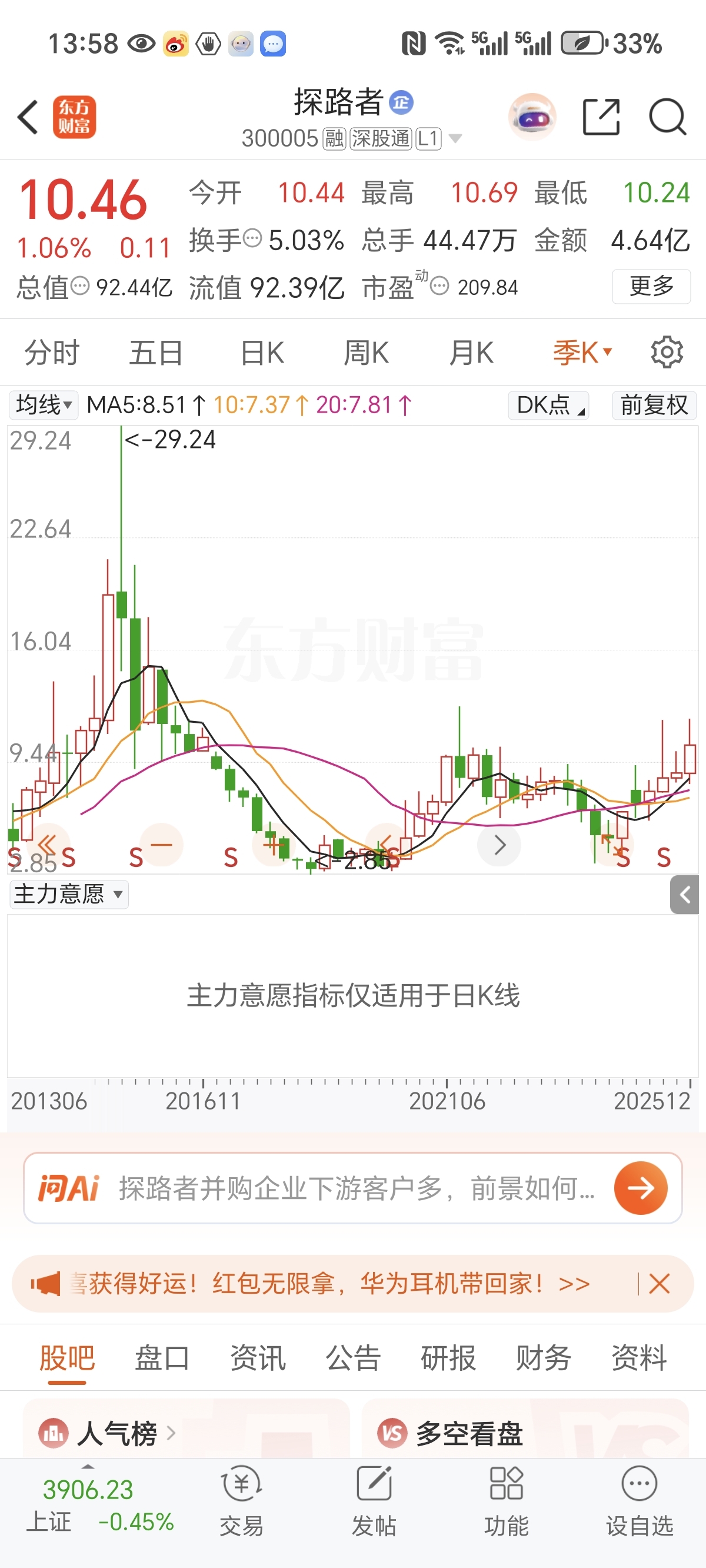 结论与建议: 可能性存在,但道路险峻:探路者(300005)确实具备了一个“十倍股故事”的所有叙事要素(彻底转型、顶级赛道、国产替代、全链条布局)。这使其成为市场在寻找“新质生产力”和“并购成长”标的时无法忽视的存在。