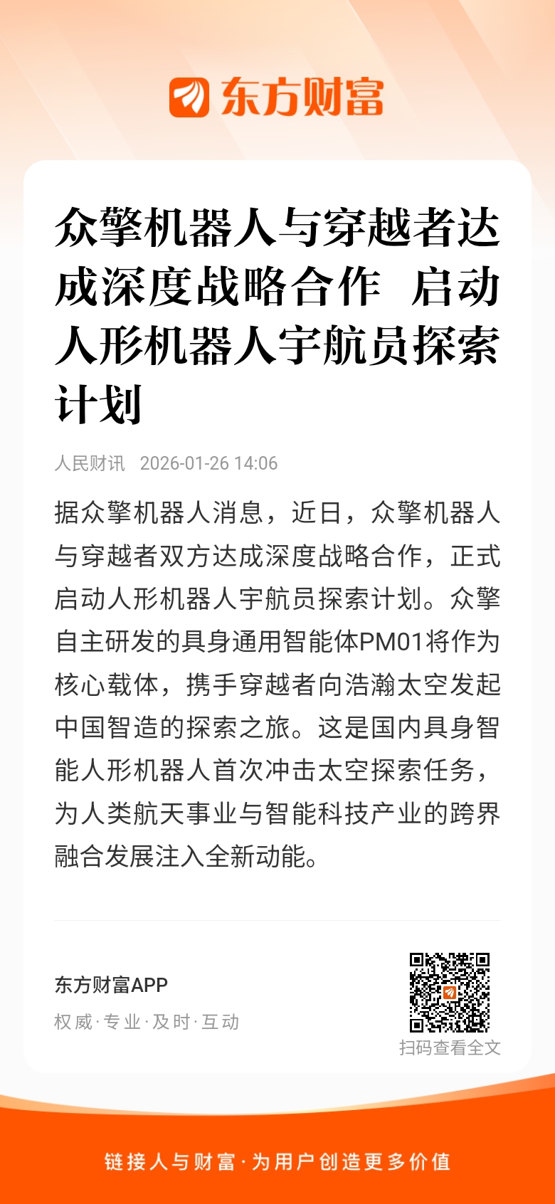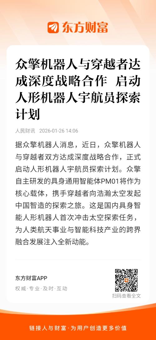 据众擎机器人消息,近日,众擎机器人与穿越者双方达成深度战略合作,正式启动人形机器人宇航员探索计划。众擎自主研发的具身通用智能体PM01将作为核心载体,携手穿越者向浩瀚太空发起中国智造的探索之旅。这是国内具身智能人形机器人首次冲击太空探索任务,为人类航天事业与智能科技产业的跨界融合发展注入全新动能。