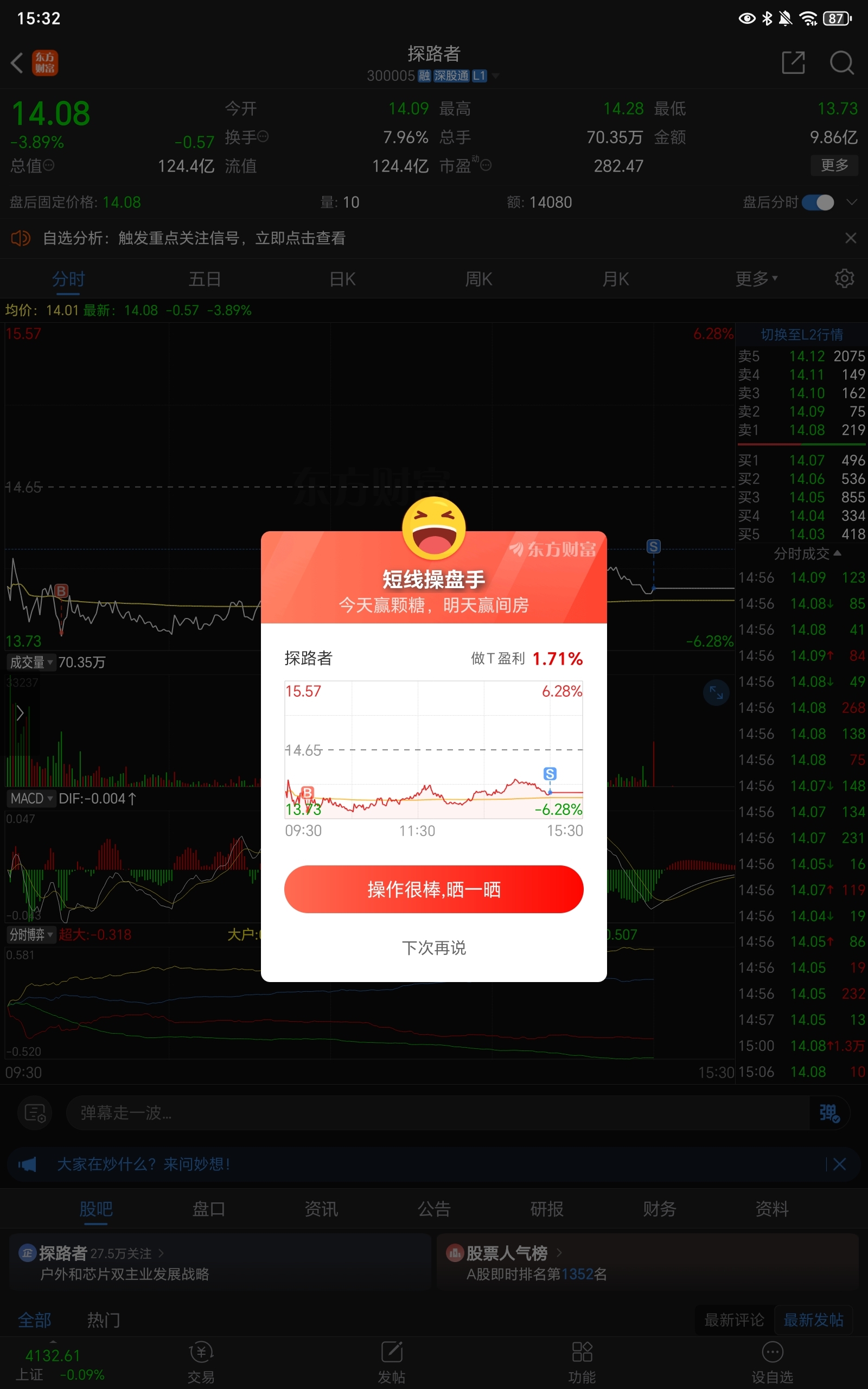 $探路者(SZ300005)$ 做T不行