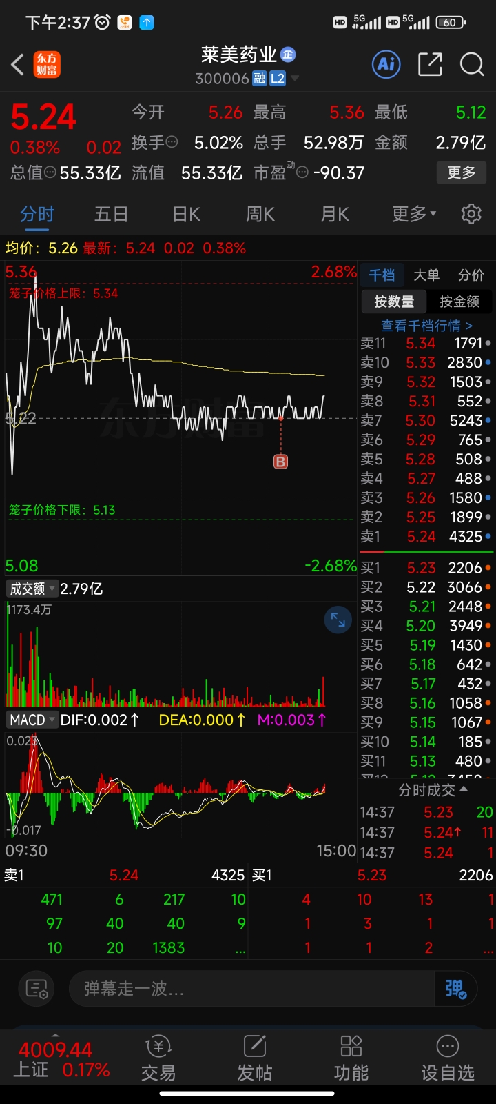 $莱美药业(SZ300006)$ 今天又加仓不知道错与对啊!不要学我啊!风险自负