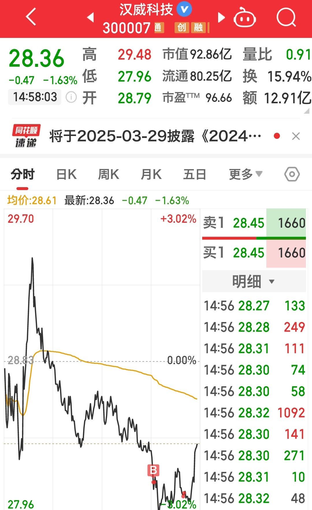 $汉威科技(SZ300007)$ 尾盘在28.06元、28.08元和28.14元开始买回;至于$软通动力(SZ301236)$ ,股谚曰“创出历史新高,回调至。。。就是买点”。