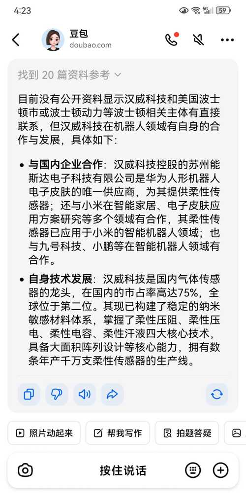 细分领域:柔性触觉传感器龙头唯一性定位:全球唯三具备柔性压阻/电容式触觉传感器量产能力(与美国Interlink并列)。公司亮点:获波士顿动力Atlas机器人下一代触觉迭代项目样机订单。阵列密度达100点/cm,力觉分辨率0.1N,可复现人手90%触觉感知。子公司山西腾星传感器和苏州能斯达电子在人形机器人领域发展迅速,多学习,多下点盘前盘后功夫,还是必修课。
