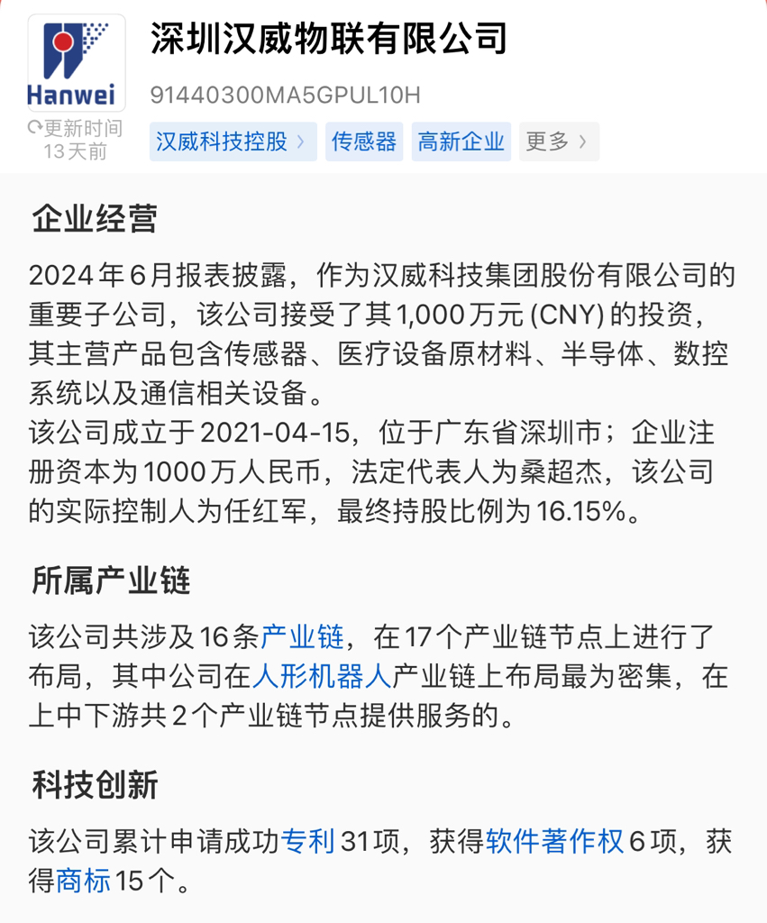 深圳汉威,主要布局机器人。