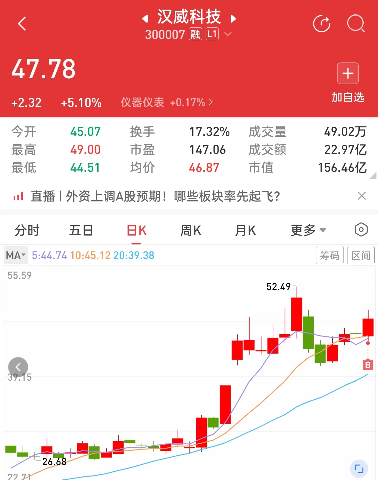 52.49 最好今天突破,这样2波就开始起来了,今天主力资金净流入1.67亿元,两市排名18/5404。概念多,走势也不错,有点像 奥飞数据的走势