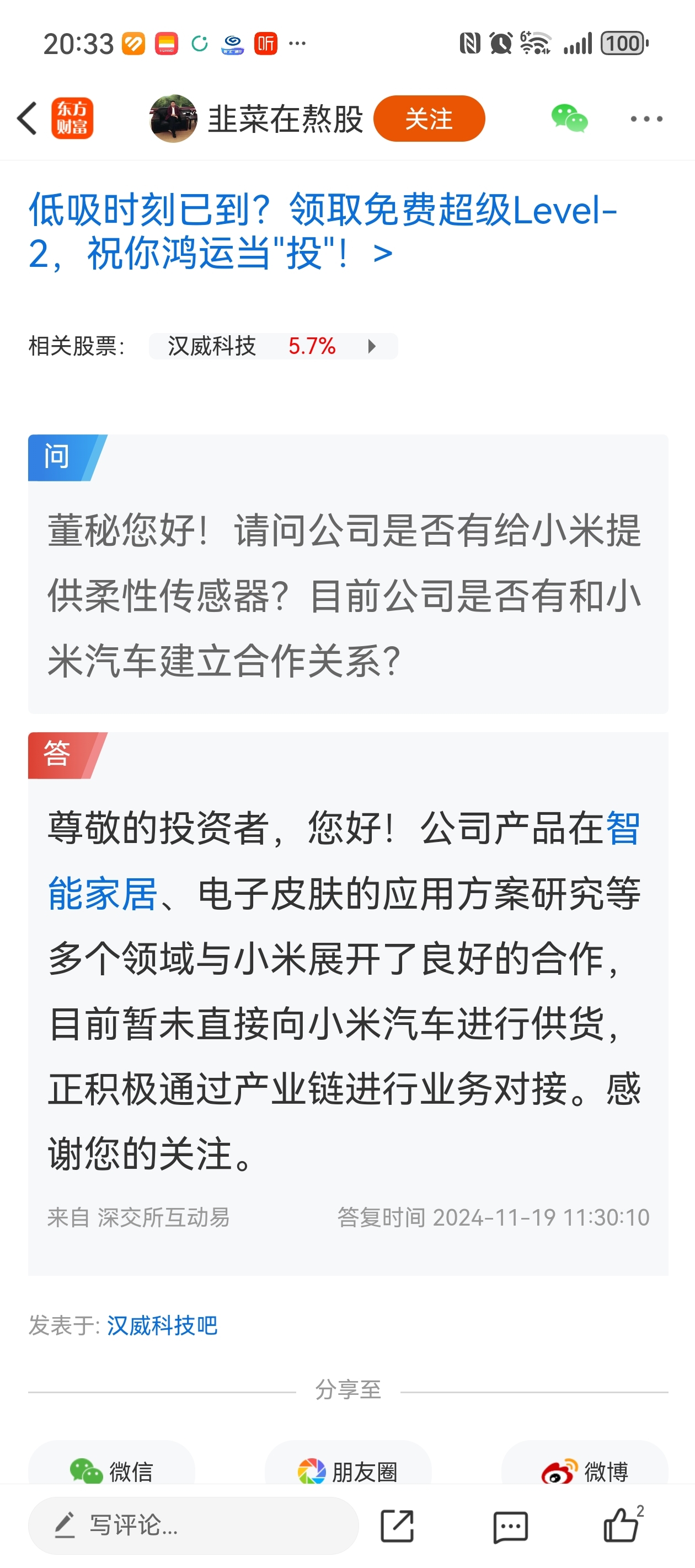 $汉威科技(SZ300007)$ 很多人还在怀疑汉威给小米供货,直接上证据吧!