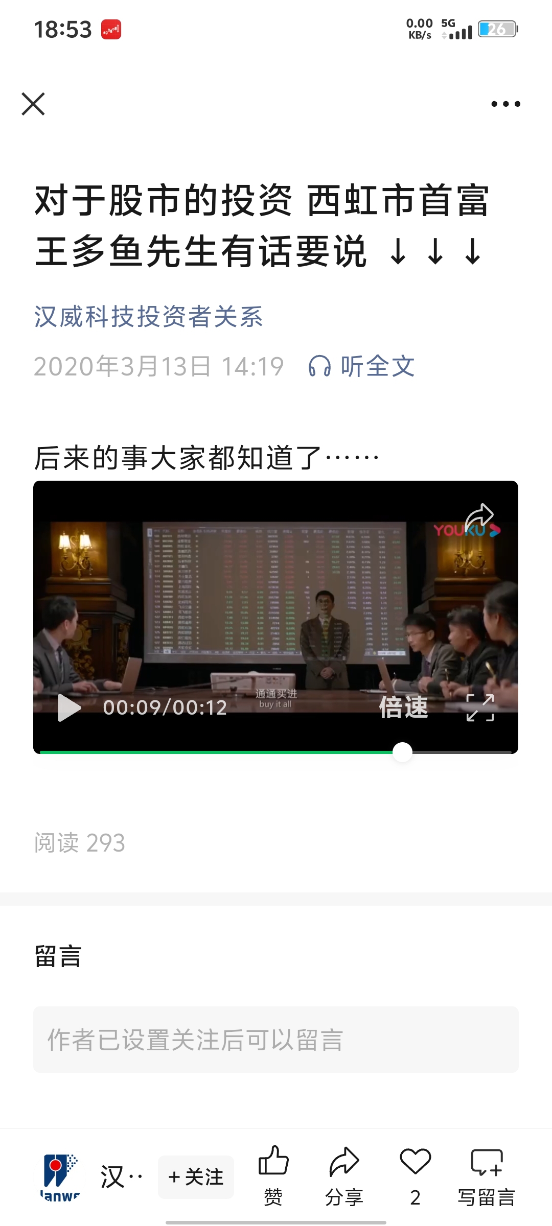 各位别慌!20年董秘就引用王多鱼教过你们了!冒绿光的通通买进!汉威最近绿的发光快