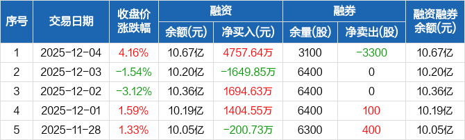 汉威科技:融资净买入4757.64万元,融资余额10.67亿元(12-04)