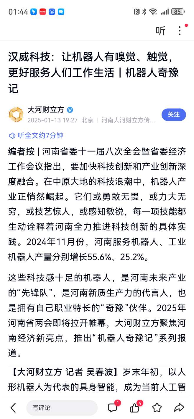 $汉威科技(SZ300007)$ 汉威科技的核心技术在养老机器人方面非常有前景,因为作为机器人需要随时通过嗅觉触觉关注老人的身体变化。