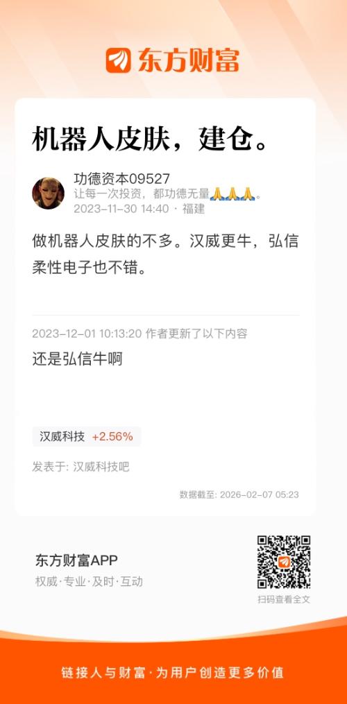 做机器人皮肤的不多。汉威更牛,弘信柔性电子也不错。