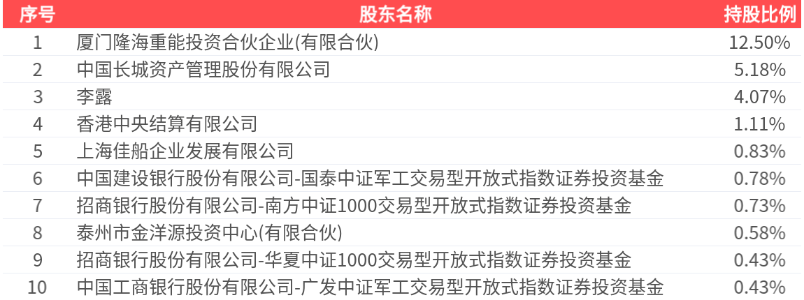 公司股东户数为12.65万户,前十大股东持股数量为4.60亿股,占总股本比例为26.64%,前十大股东持股情况如下: