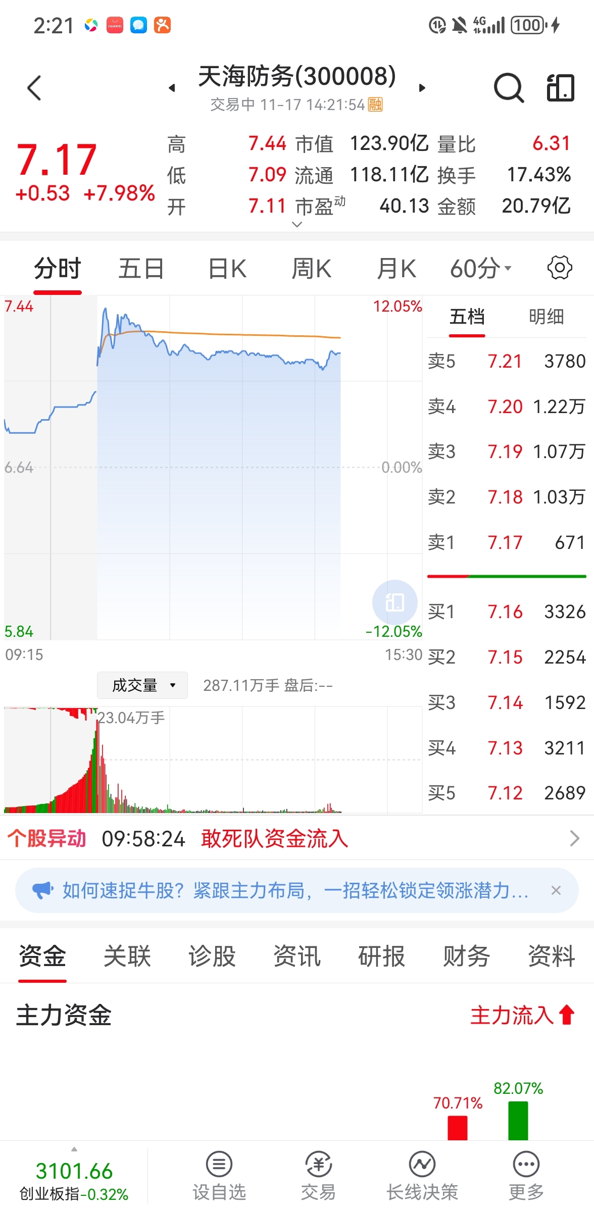 $天海防务(SZ300008)$ 这上面挂了2千五百万卖单,不会是主力故意压盘,诱空吧!。