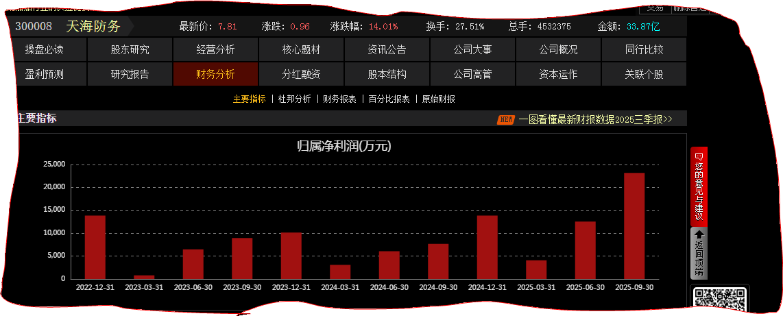 天海防务股价低,主力资金净流入5个亿,公司的财务红柱冲顶,业绩特别好,为什么那么多人砸盘不让涨?有什么利空?
