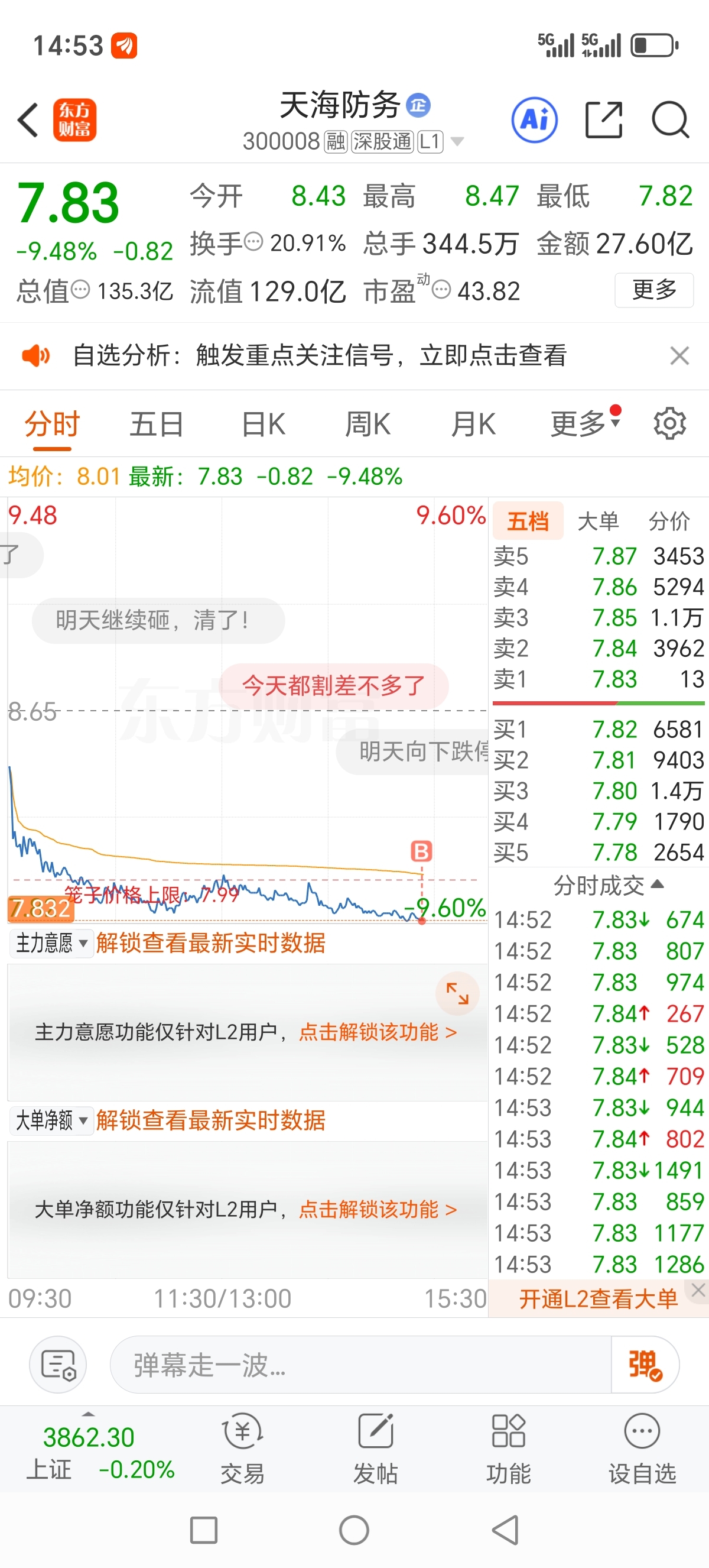 $天海防务(SZ300008)$ 买了,明天7+88能卖出吗,不贪