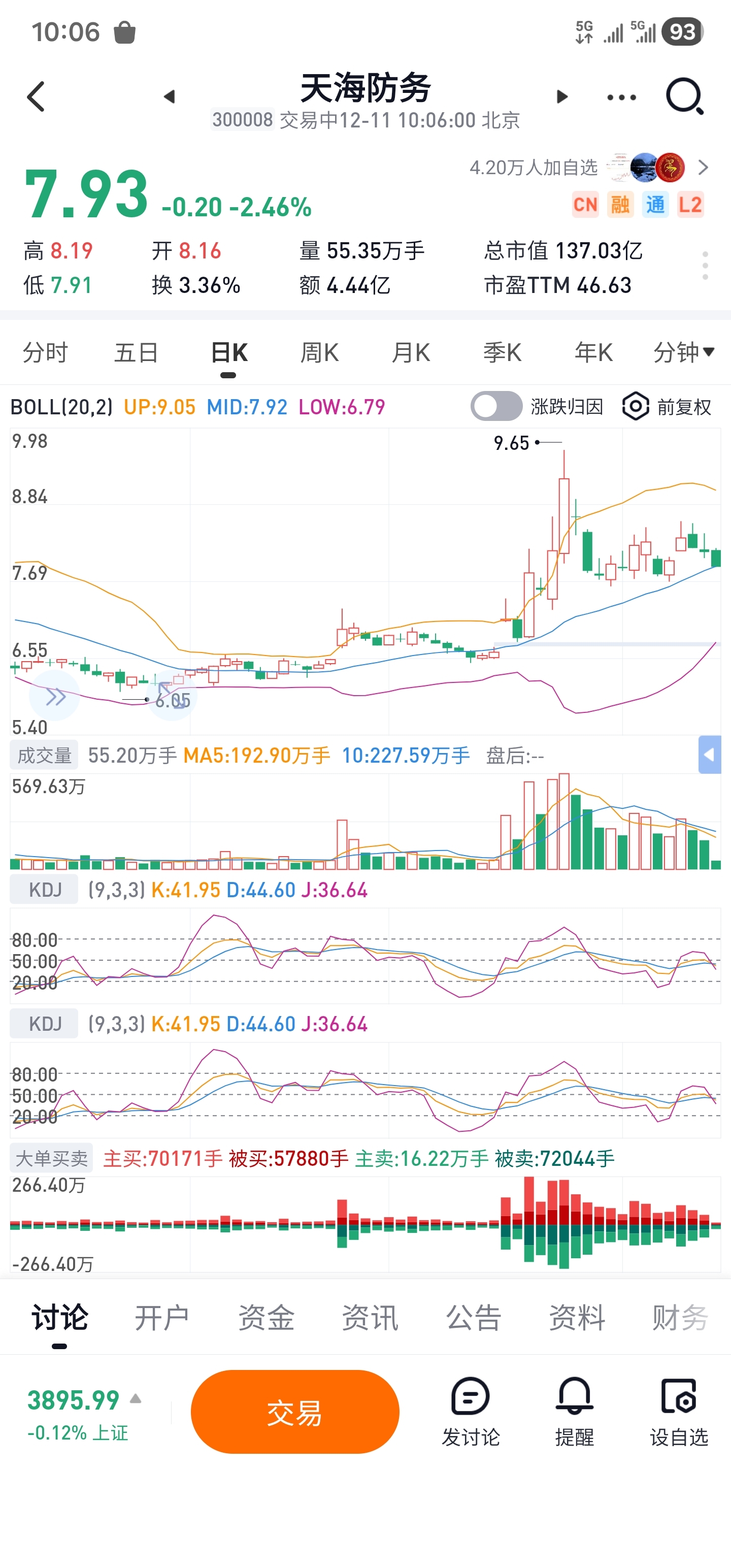 $天海防务(SZ300008)$ 已经企稳,可以等待大阳线突破,符合预期,碰一下布林线中轨