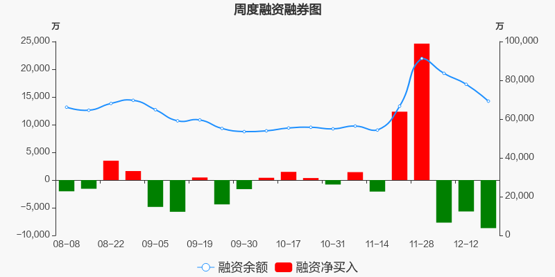 天海防务本周(2025/12/15-2025/12/19)累计跌幅达5.49%,截至12月19日最新股价报收7.75元。从增量上来看,12月15日至12月18日融资买入交易规模3.72亿元,融资偿还规模4.59亿元,期内融资净偿还8678.55万元。从存量上来看,截止12月21日,天海防务融资融券余额6.93亿元,其中融资余额规模6.93亿元,融券余额规模42.79万元。