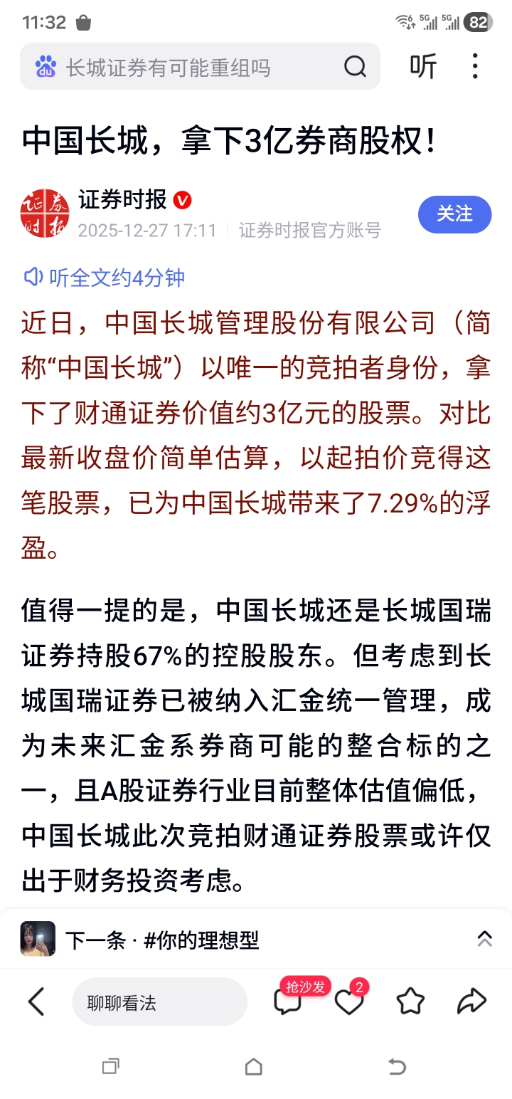 $天海防务(SZ300008)$ $鼎泰高科(SZ301377)$ $博威合金(SH601137)$ 长城资管竞拍拿下财通证券3亿股权,对天海防务的减持应该告一段落