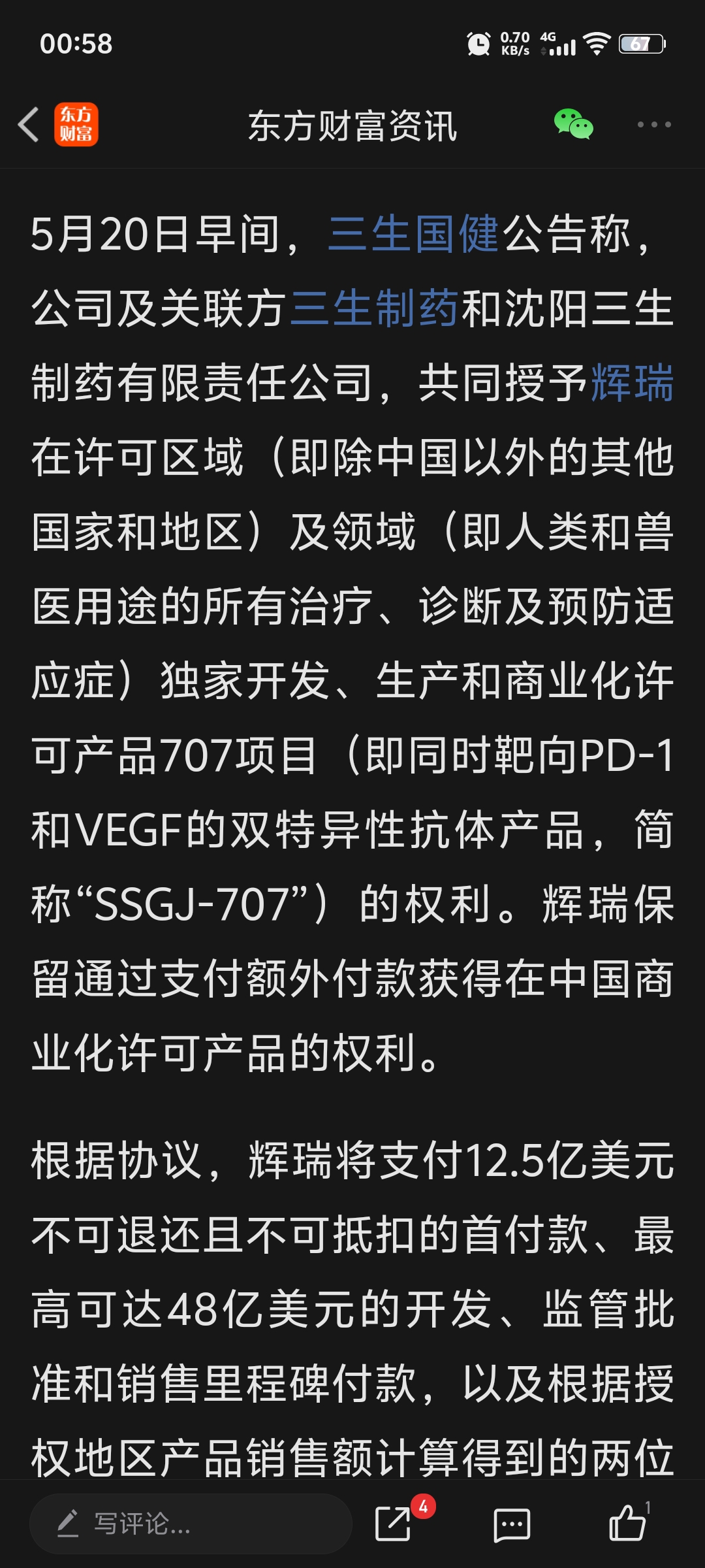 $安科生物(SZ300009)$ 同样有双特异抗体,人家三生制药授予辉瑞运营,首期价格达12.5亿美元。看看安科,什么鬼样。