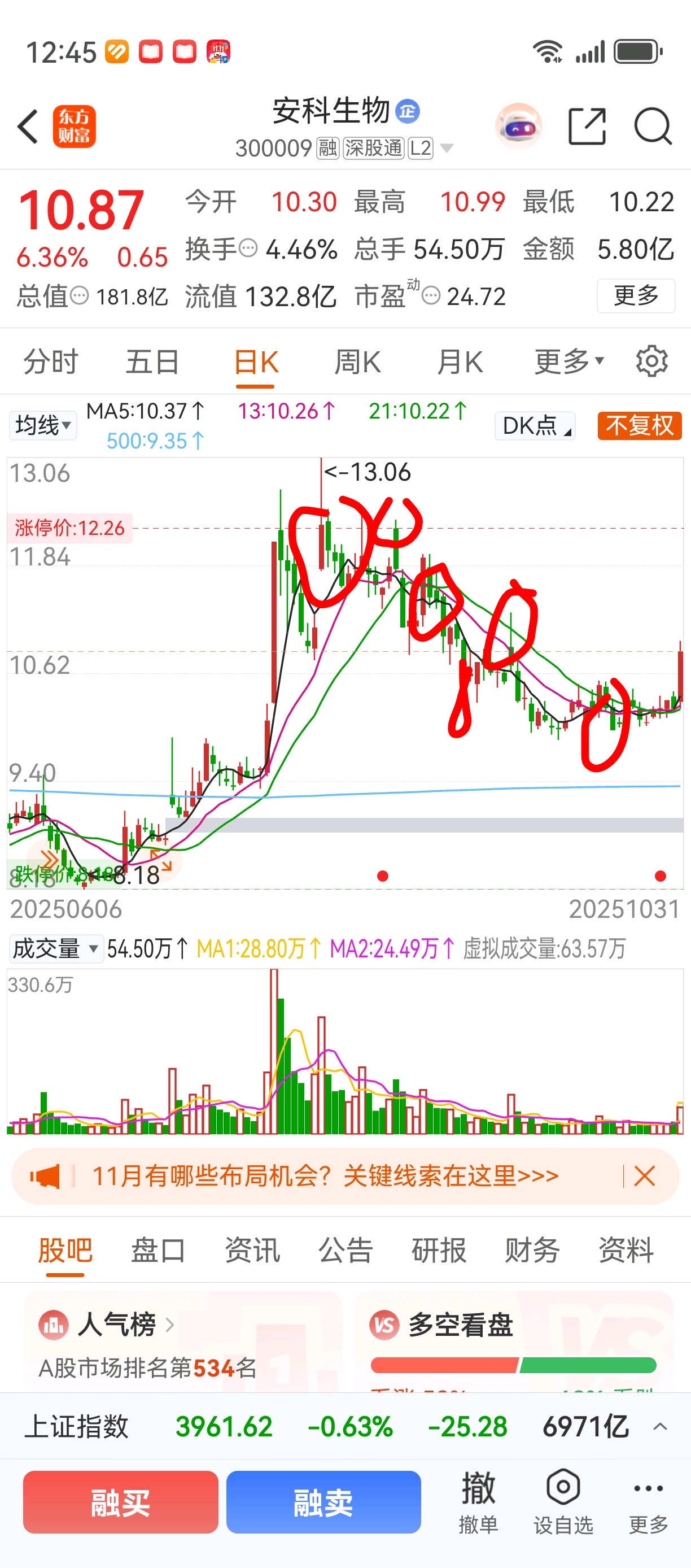 $安科生物(SZ300009)$ 这个量,只能是反弹!看看安科K线,每一次反弹,都是跑的机会,吸取教训吧!