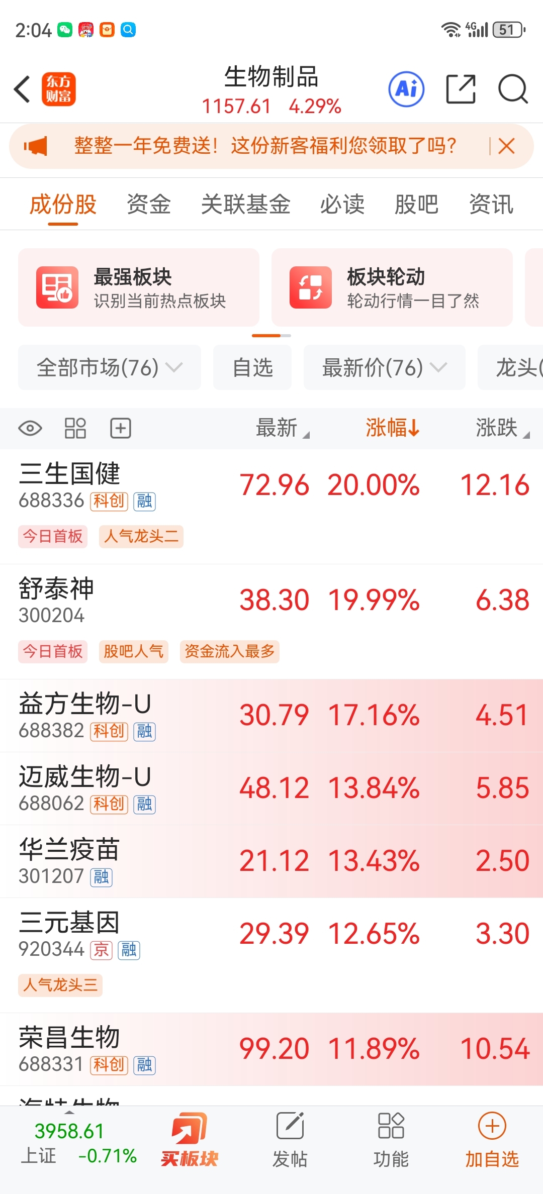 $安科生物(SZ300009)$ 只是反弹行情 板块大涨成这样的