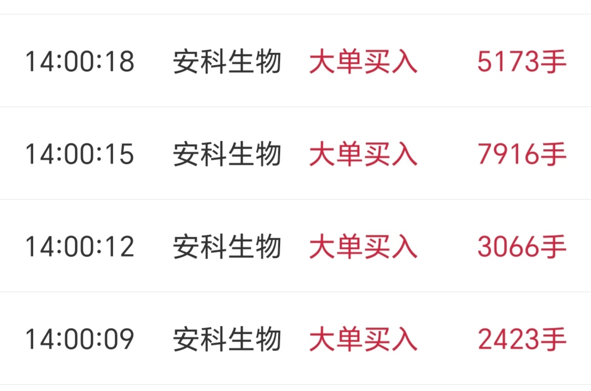 安科生物14点的四个大单有哪位高手能分析一下吗?