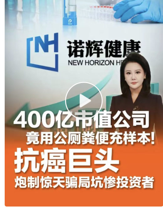 400亿市值公司竟用公厕便充样本抗癌巨头炮制惊天骗局坑惨投资者!诺辉健康!现在