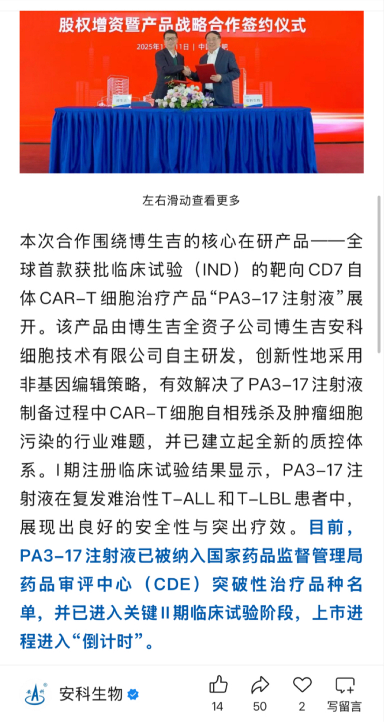 $安科生物(SZ300009)$ 重磅大利好!明日涨停。