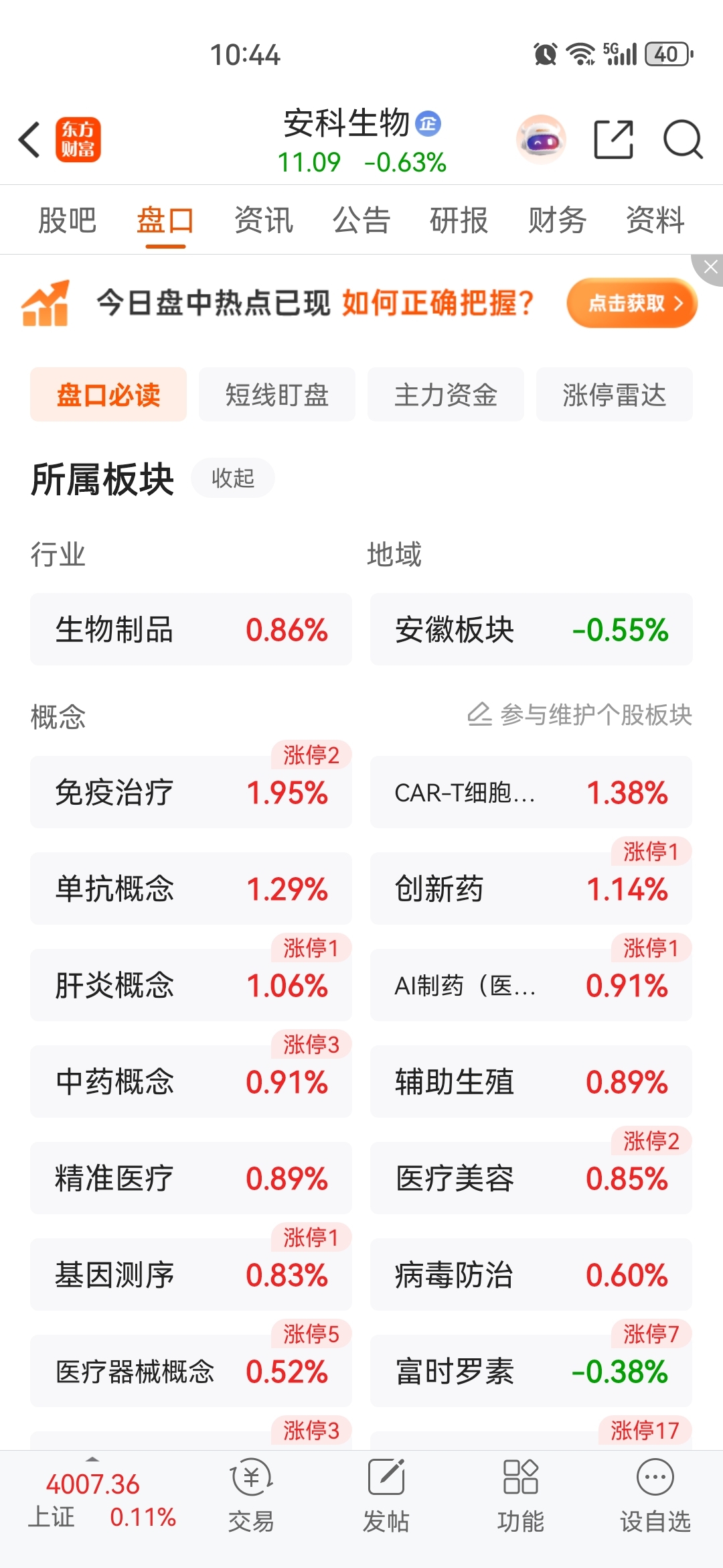 $安科生物(SZ300009)$ 那个板块跌,他跟那个板块,真垃圾