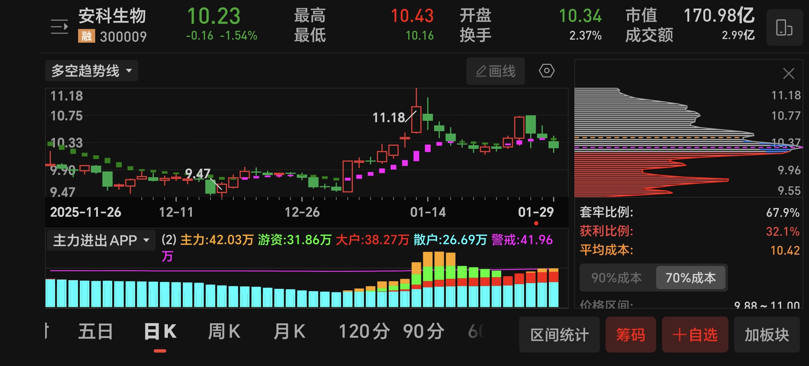 中期操盘线,继续多头。主力持仓成本线10.25元。筹码峰结构比较完整。主力并没有