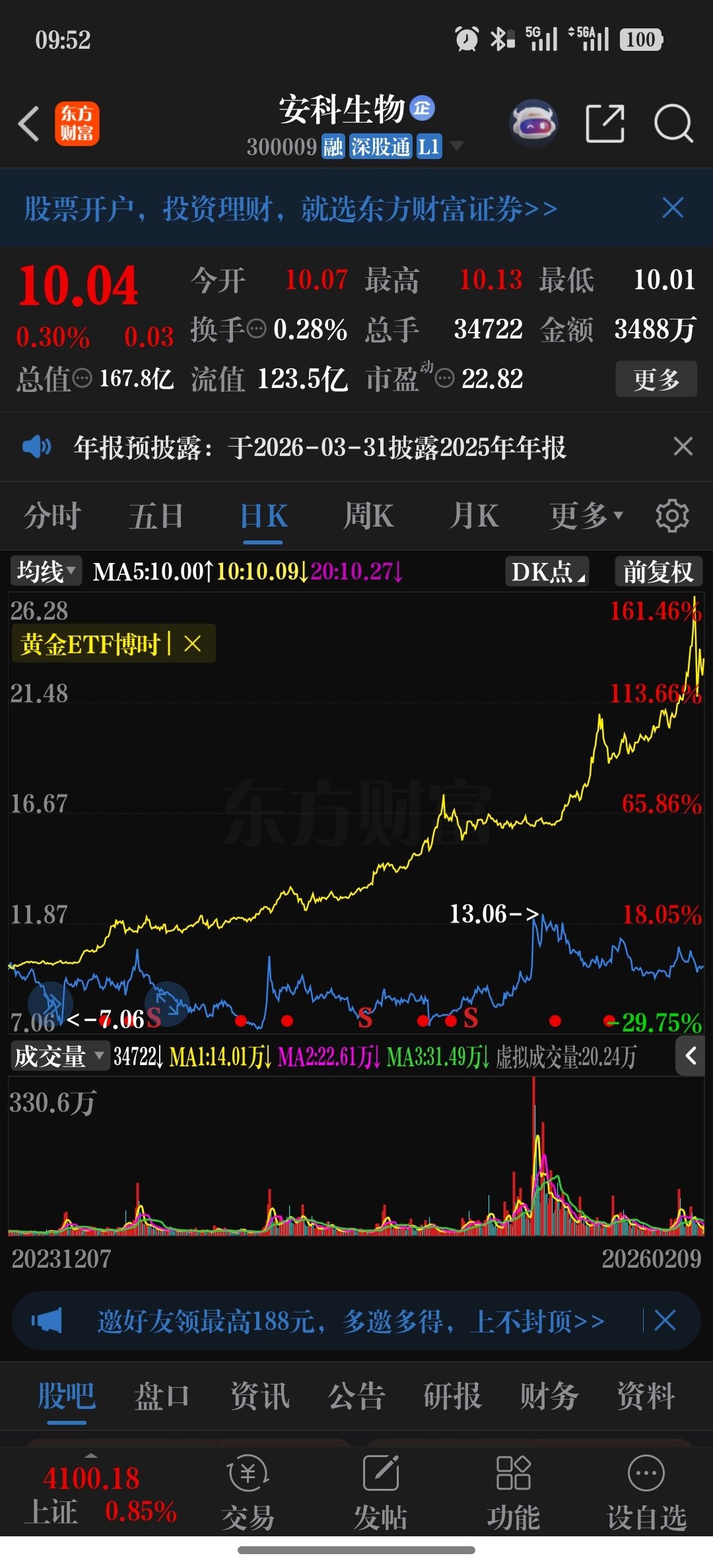 $安科生物(SZ300009)$ 时间是你的朋友?别自我麻痹了,时间是谁的朋友,取决于你买的什么股票,从2023年12月以来,安科与黄金的走势能比吗?持有安科,你将享受巨大的沉没成本