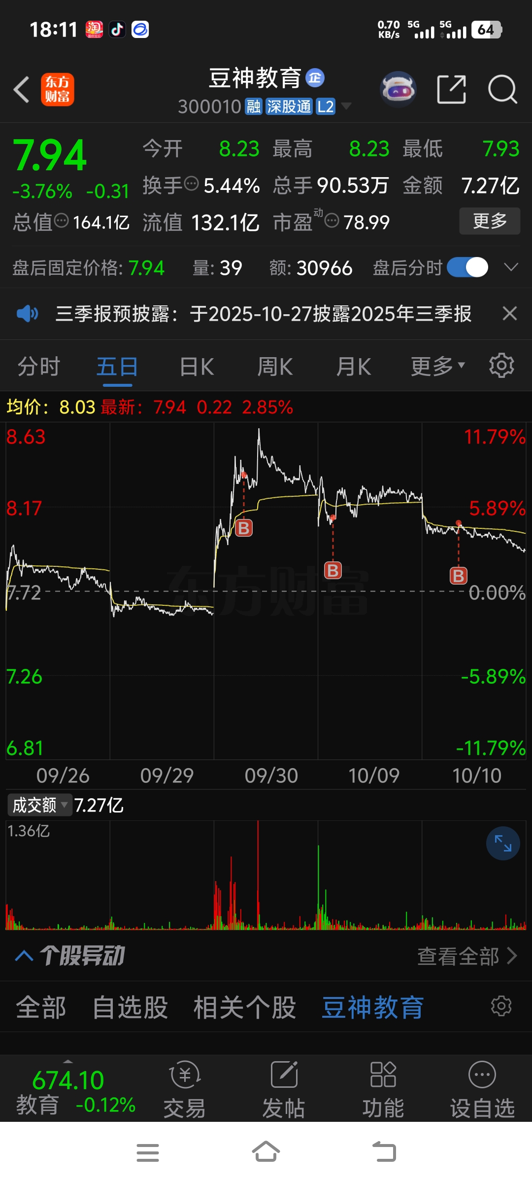 $豆神教育(SZ300010)$ 主力你再砸,筹码都被我买光了,我是奔着抄底来的