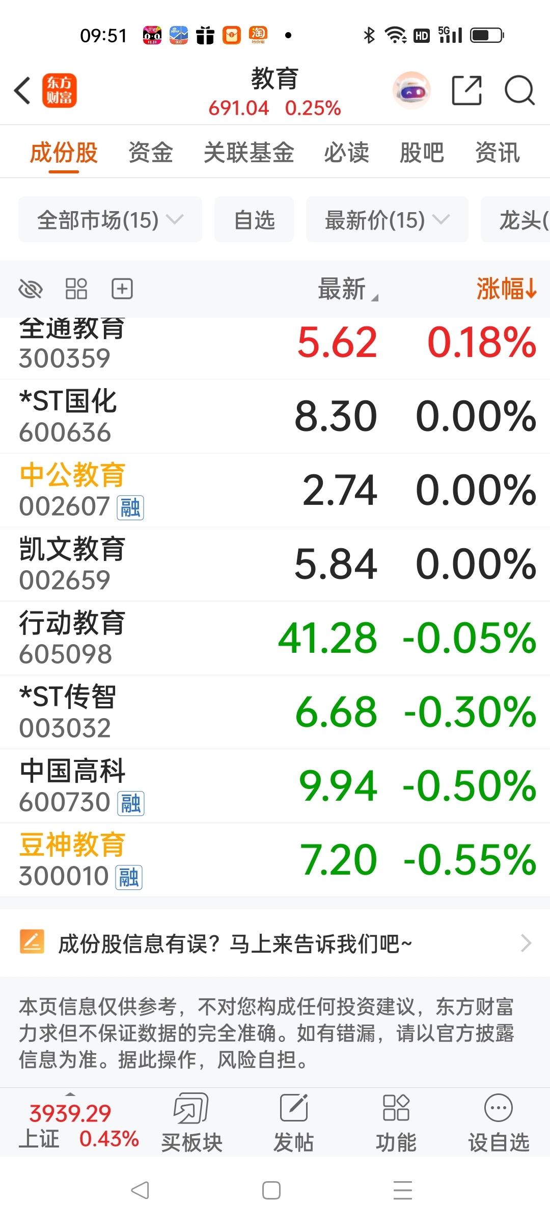 $豆神教育(SZ300010)$ 我滴个天呐,又是板块倒数第一,一个月22个交易日,最少20个交易日是倒数后三名。炒股那么多年,第一次见到,大开眼界。各位投资者,你们怎么看?