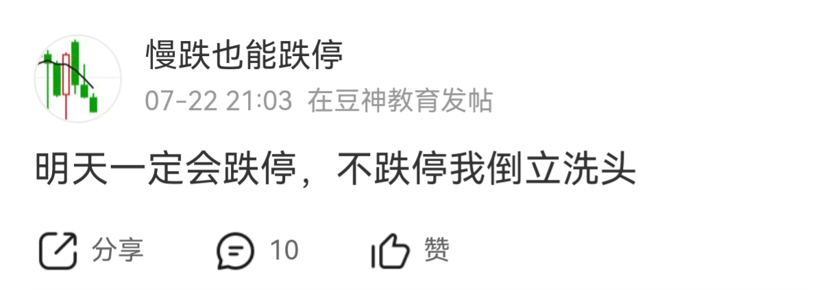 $豆神教育(SZ300010)$ 慢跌也能跌停这个马甲号经常被打脸