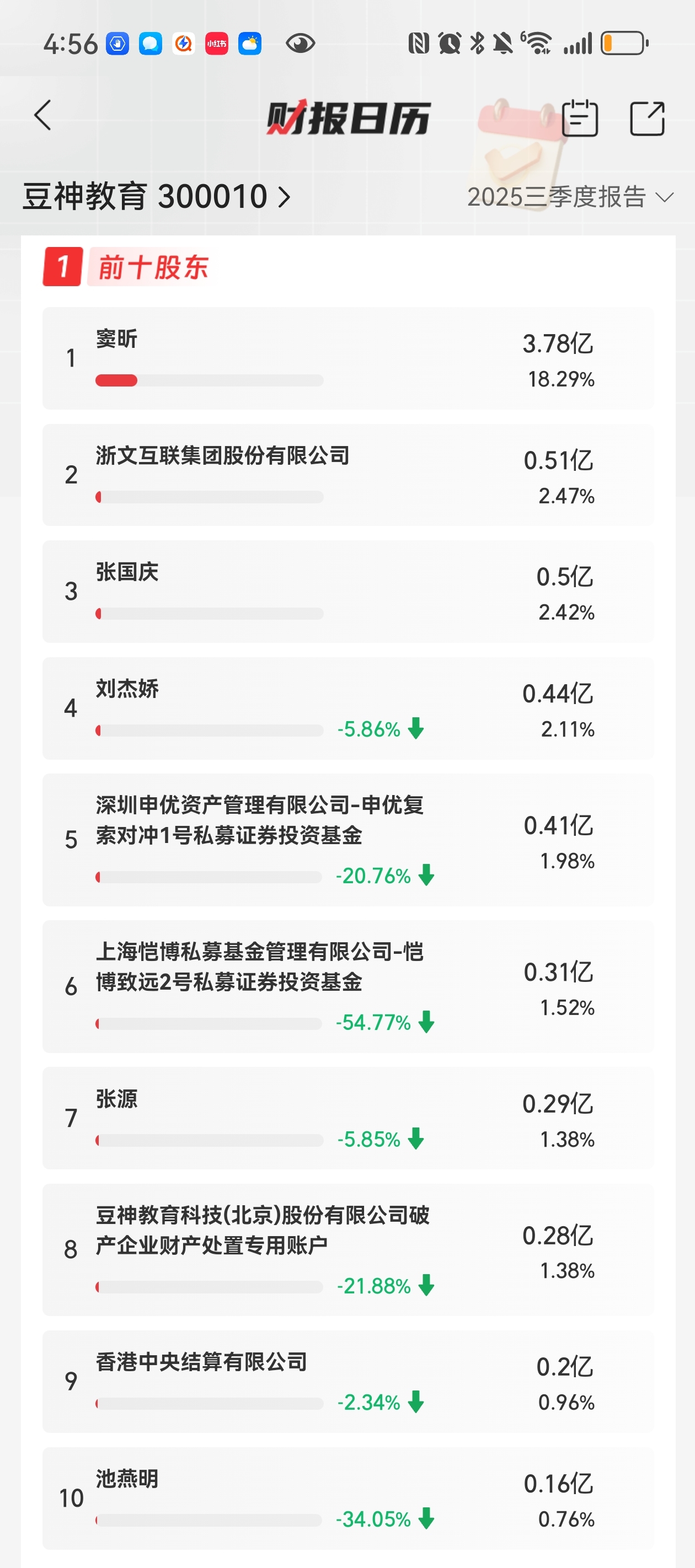 $豆神教育(SZ300010)$ 整个三季度都在清仓式减持
