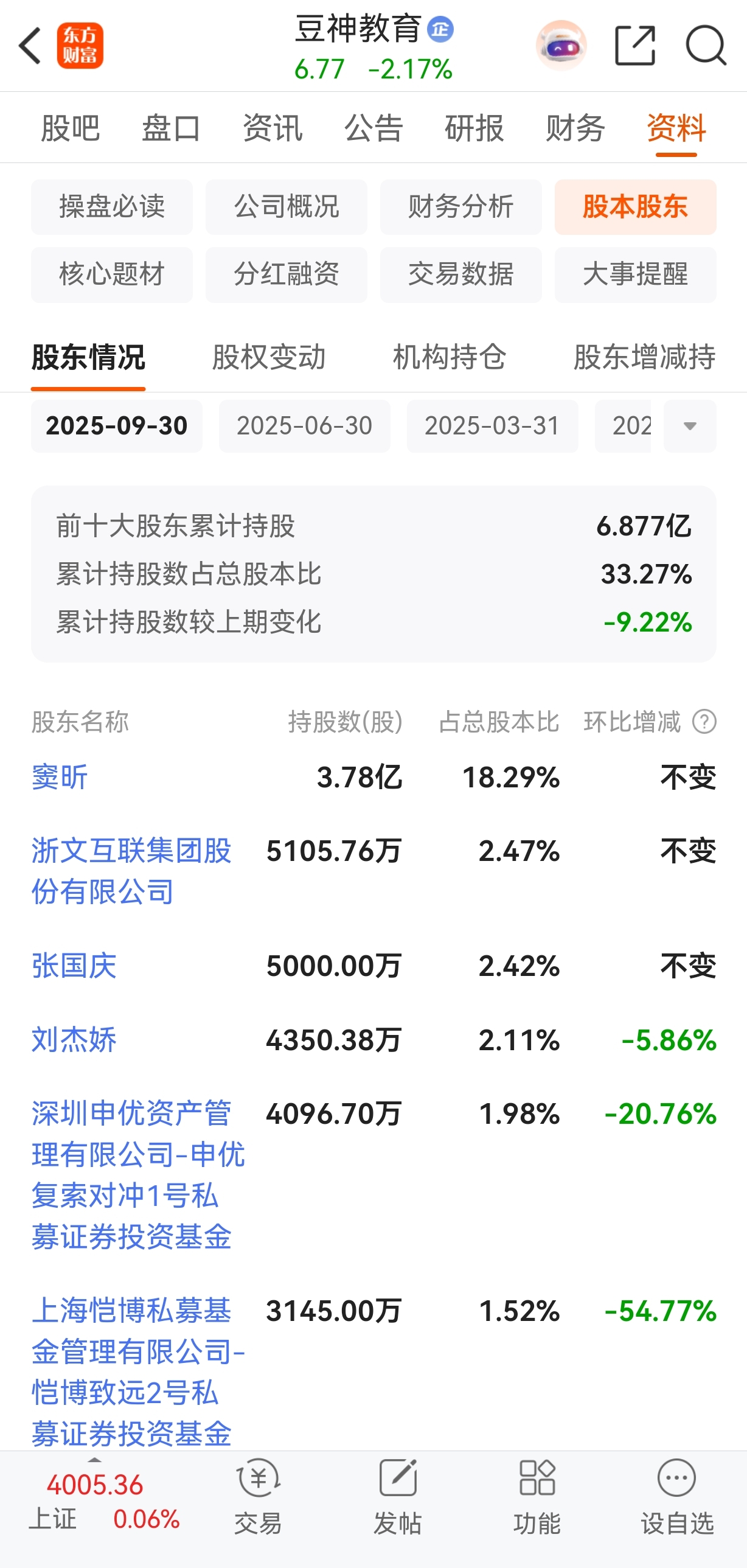 十大股东6月到9月一共减持了15%,这几个月应该减持的更多