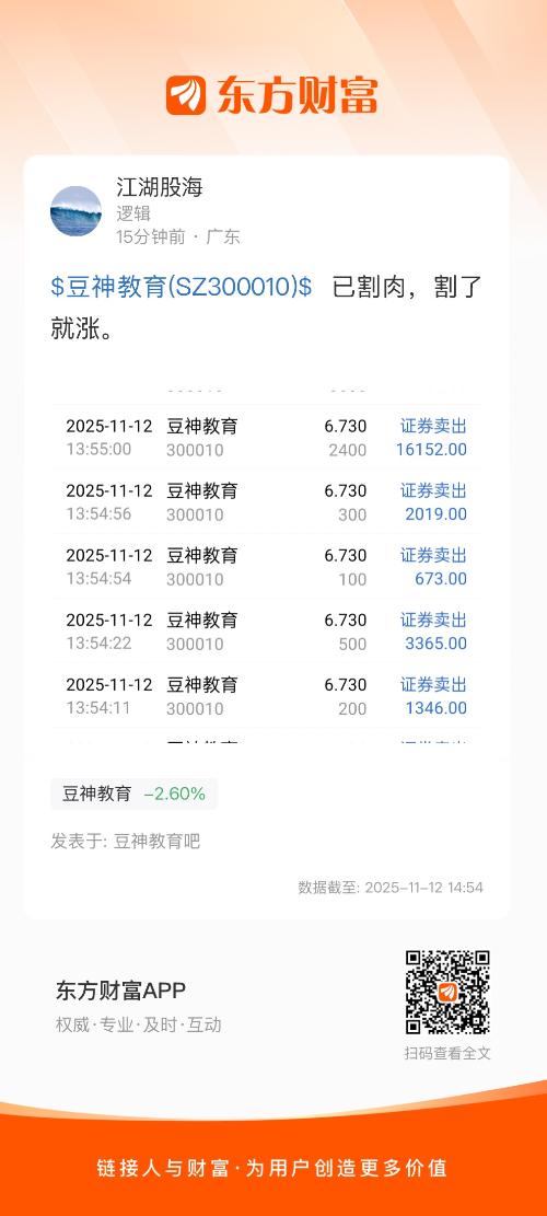 $豆神教育(SZ300010)$  已割肉,割了就涨。