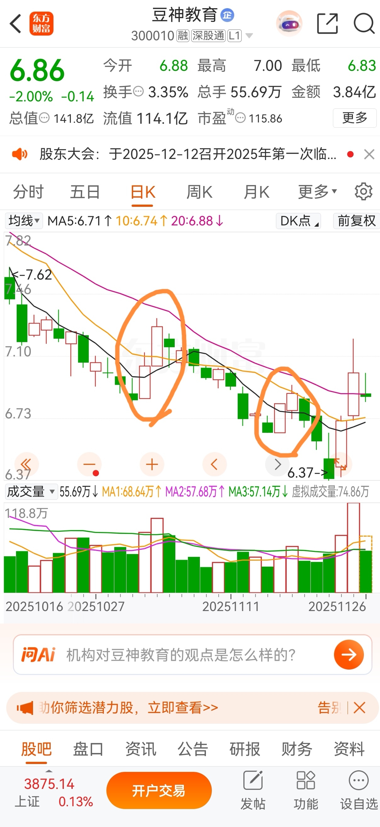 $豆神教育(SZ300010)$ 这两天拉伸的走势跟前面两次拉伸的走势,不能说很像,只能说一模一样。