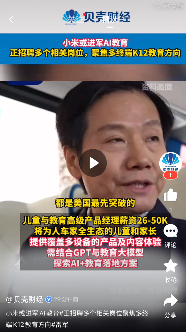 $豆神教育(SZ300010)$ 小米进军ai教育