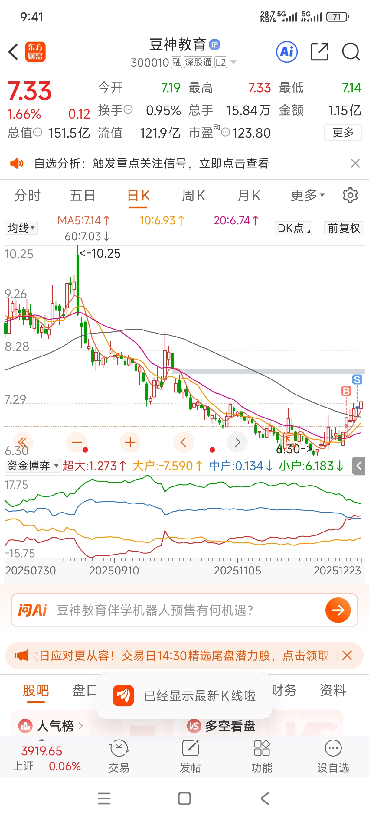 $豆神教育(SZ300010)$ 昨天卖了,今天就拉,韭菜命