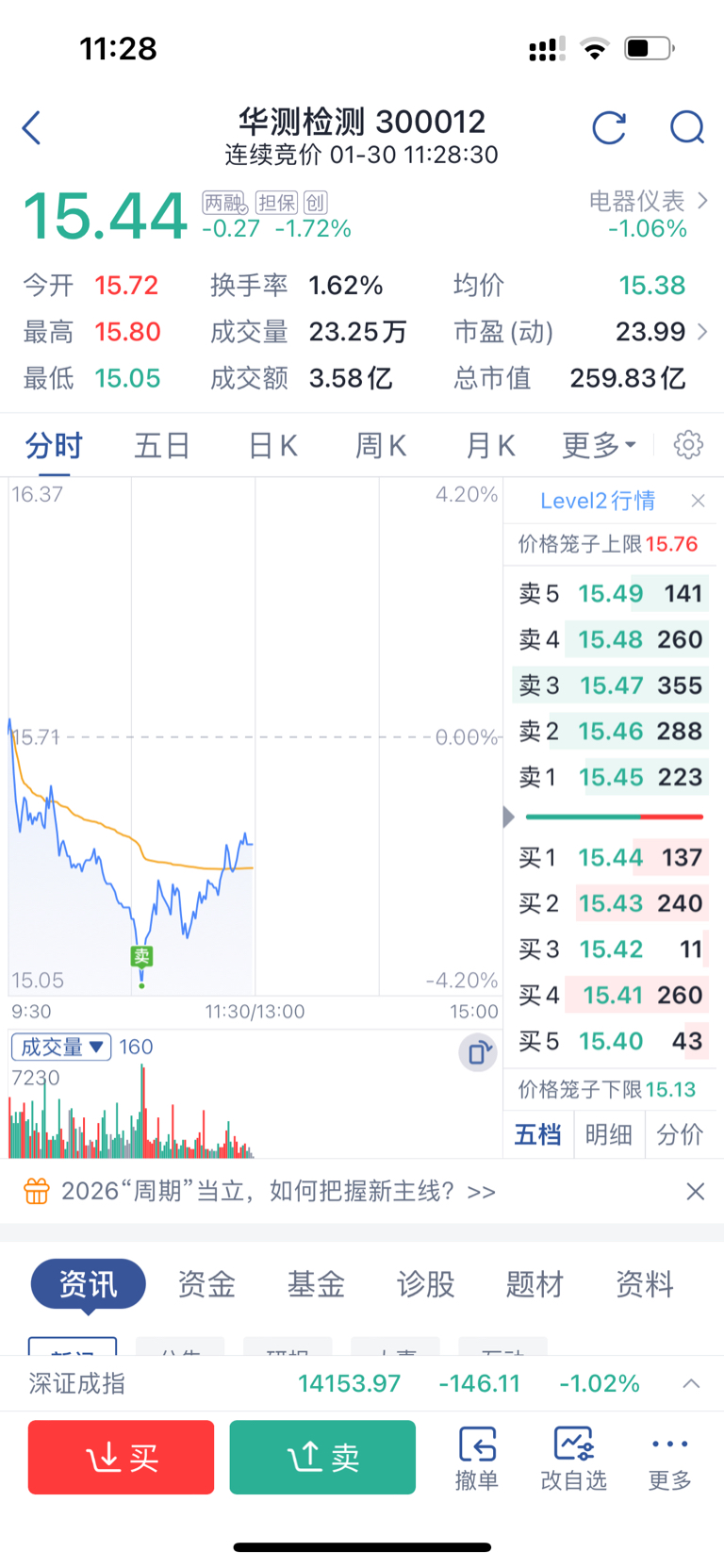 $华测检测(SZ300012)$ 炒股以来最耻辱的一次操作,卖在全天最低点,卖完0.5秒就拉升了……鄵……