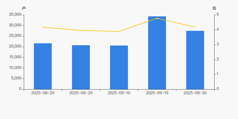 2025年8月20日至今,公司股东户数显著增长,区间涨幅为27.20%。2025年8月20日至2025年9月30日区间股价上涨0.24%。