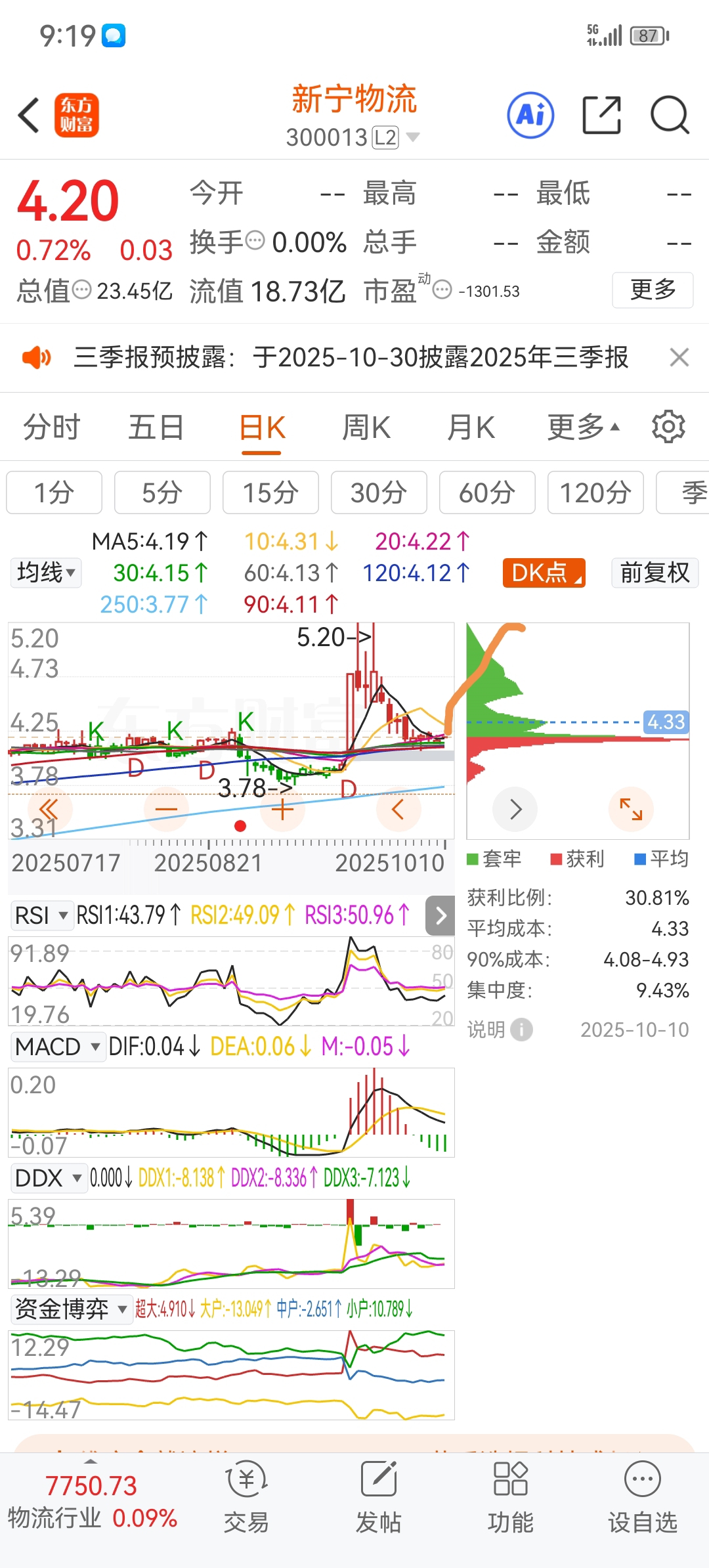 $新宁物流(SZ300013)$ 调整完毕