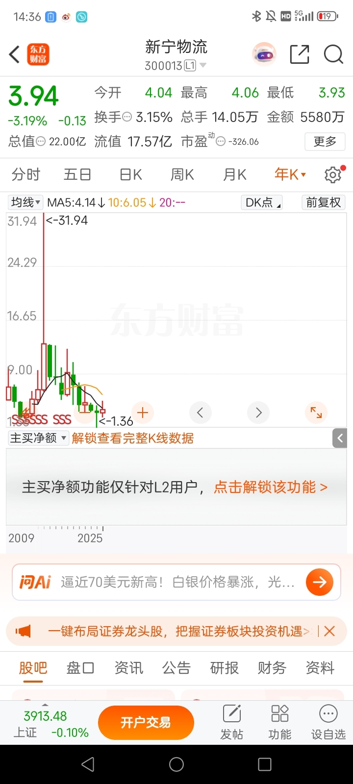 $新宁物流(SZ300013)$ 从32跌到3.94这叫涨了。跌幅80%你拿哪个眼睛看它涨了。