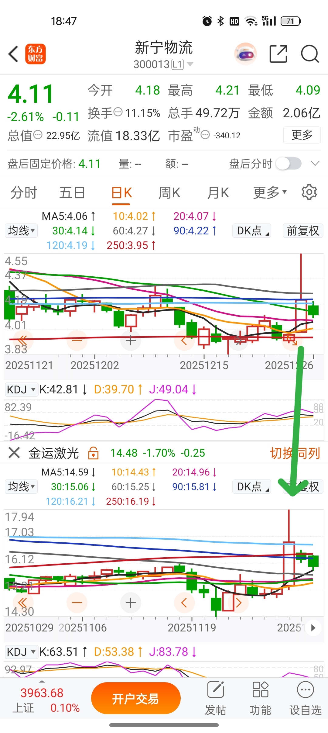 $新宁物流(SZ300013)$ 如果按金运激光的剧本,明天新宁下跌2%
