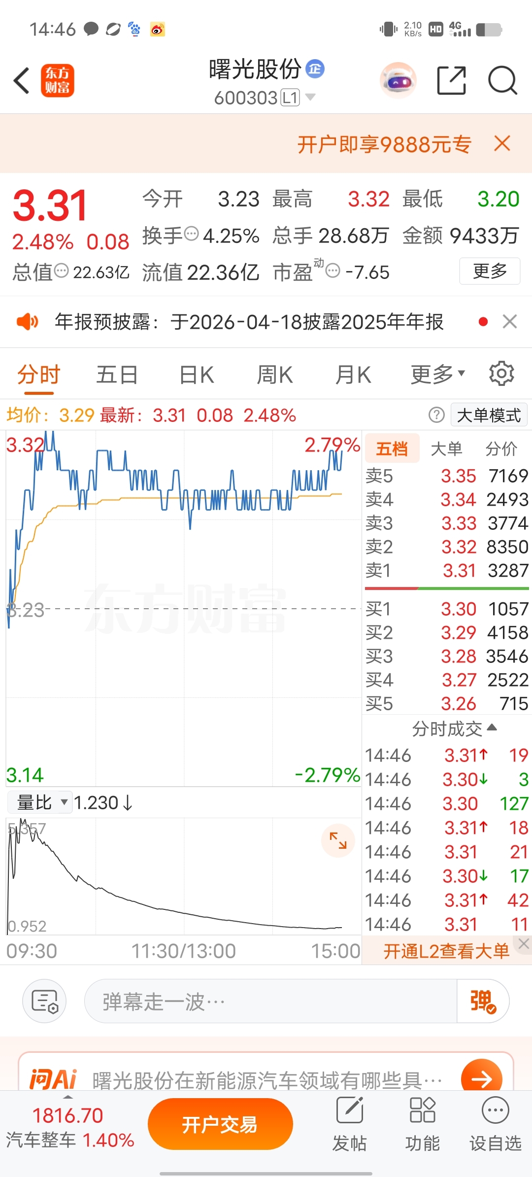 曙光股份这星期必过23亿市值。我这有三成。新宁不行啦将成为22亿市值里股价倒数第