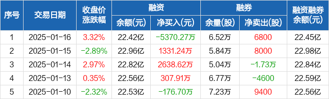 亿纬锂能:融资净偿还5370.27万元,融资余额22.42亿元(01-16)