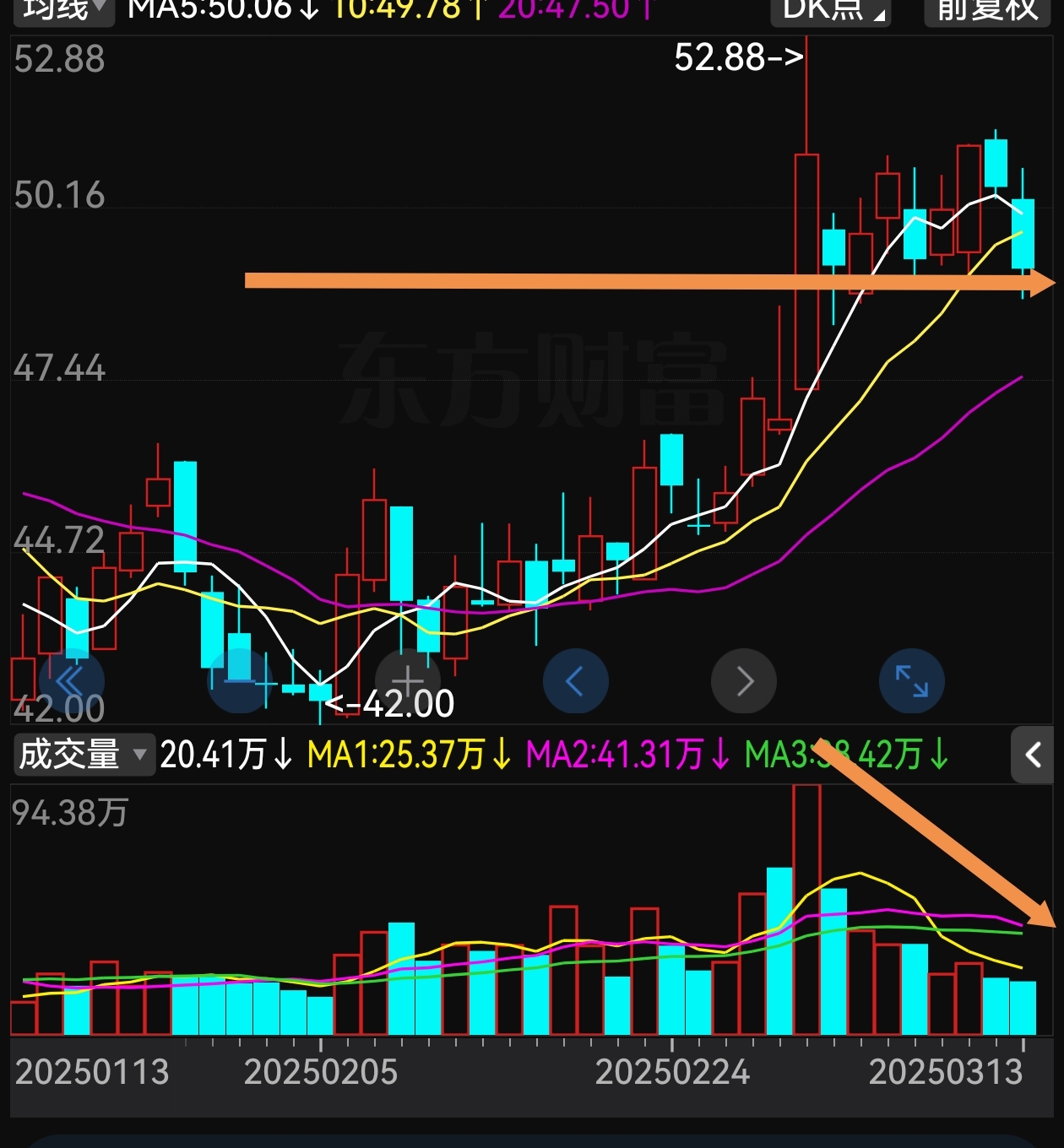 300014是继续在49.18之上横盘等20线上来。还是自己下跌去找20日线。静观其变。