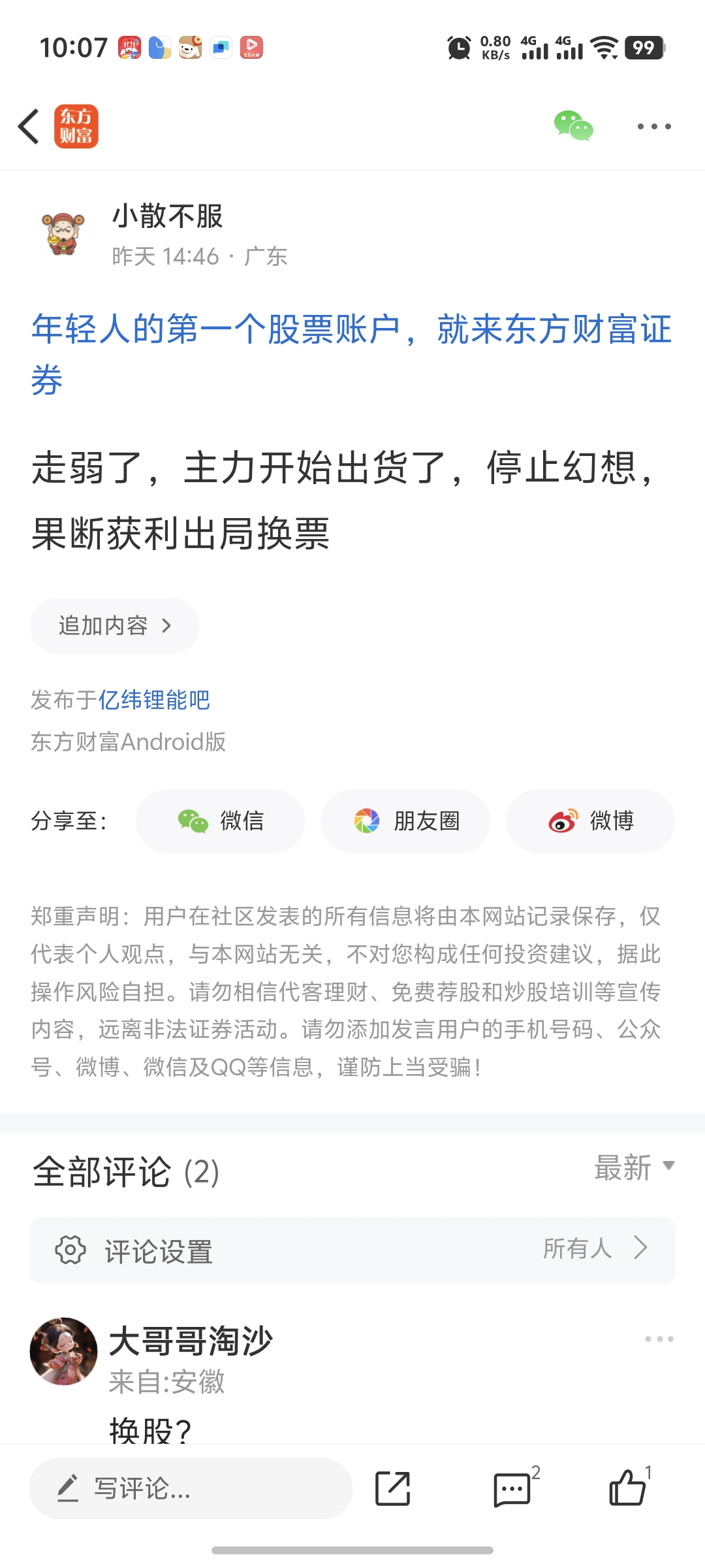 温馨提示: 1.根据《证券法》规定,禁止编造、传播虚假信息或者误导性信息,扰乱证券市场;2.用户在本社区发表的所有资料、言论等仅代表个人观点,与本网站立场无关,不对您构成任何投资建议。用户应基于自己的独立判断,自行决定证券投资并承担相应风险。《东方财富社区管理规定》