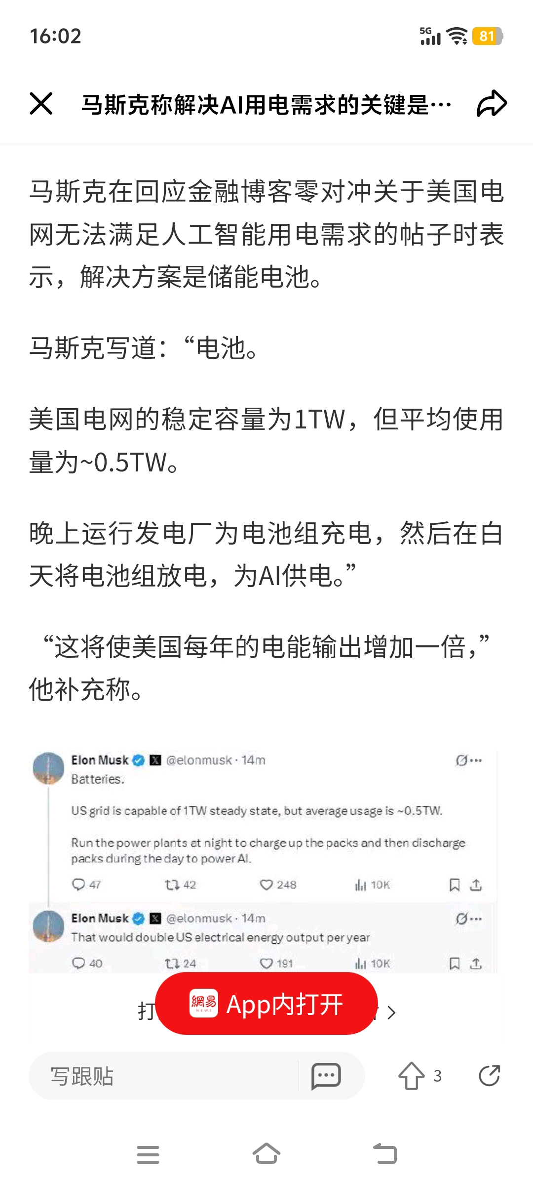 $亿纬锂能(SZ300014)$ 马斯克又发文吹电池了