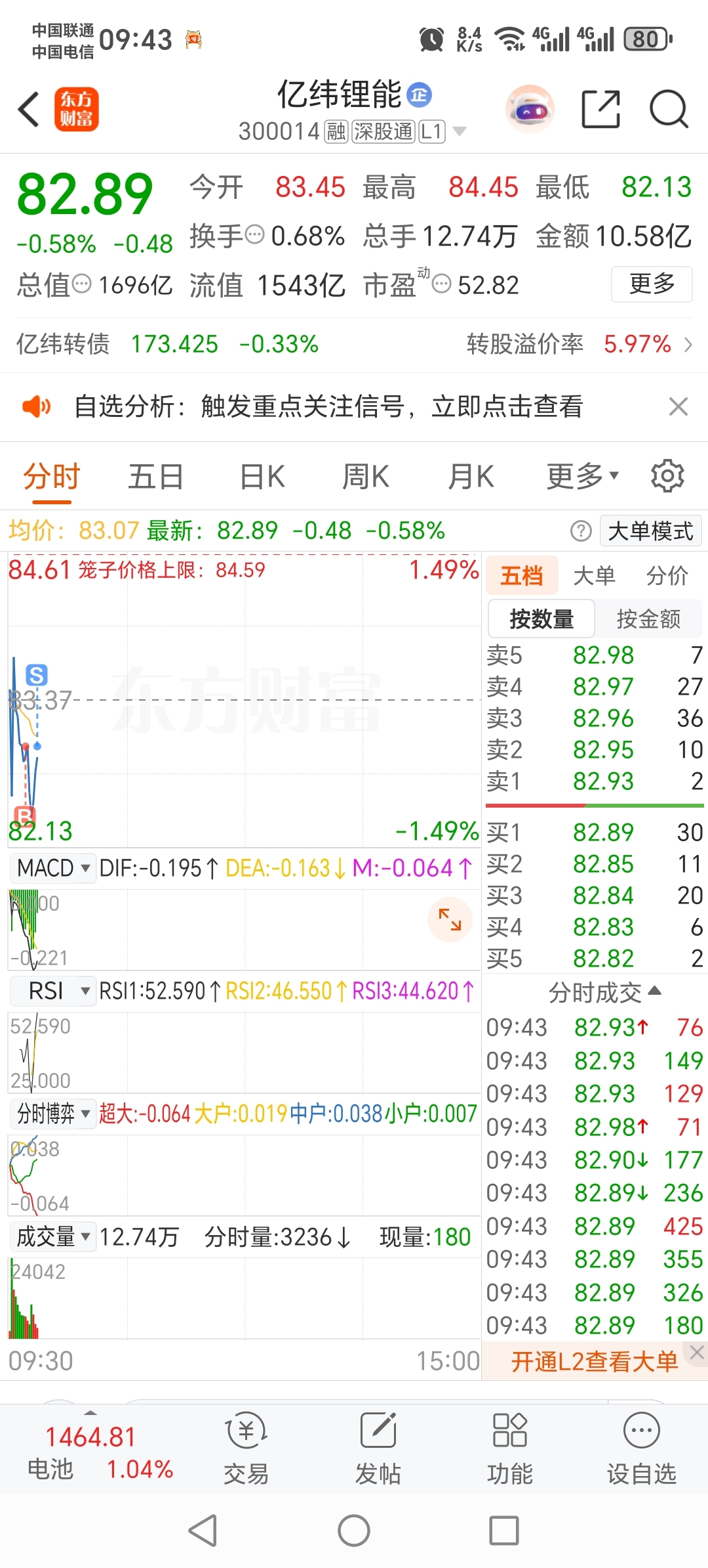 $亿纬锂能(SZ300014)$ 只留一手,今天感觉回一直水下